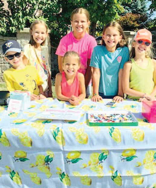 A group of Grimsby youth took an otherwise quiet summer Wednesday and turned it into a charity happening with proceeds going to McMaster Chldren’s Hospital. (L to R) Nixon and Lexi Zych, Rachel (front), Aubrey and Emily Oliveira and Natalia Zych teamed up to sell lemonade to Livingston Avenue passersby. The group raised $400. Special thanks to the Niagara Regional Police officer who stopped by for a sip. The visit made their day.