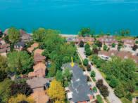 Rarely offered 1 1/2 story freehold townhome in upscale lakefront enclave. Fully finished top to bottom. Long shoreline & beach only steps away. Open concept design with main floor family room with built-in cabinetry & gas fireplace open to eat-in kitchen with double garden doors to a private magical backyard retreat. This exceptional home is a short stroll to town, marina & lakefront parks. $799,900
