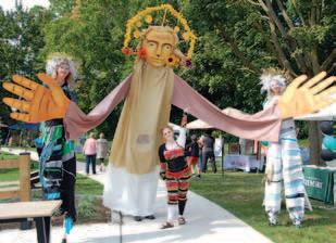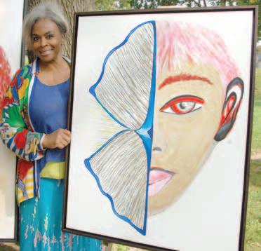Awarding-winning humanitarian, coach, educator, healer, author and local artist, Dr. Maxine McLean - founder of the Gratitude Keeper corporation - with her vibrant creation, Metamorphosis at Sunday’s Arts Walk.