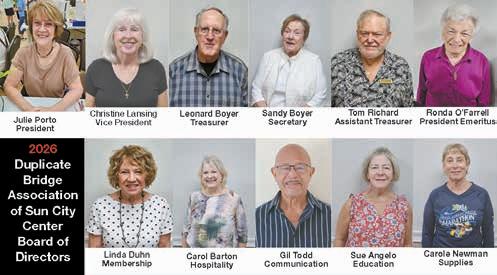 The Sun City Center Board of Directors held its monthly meeting in the Rollins Theater on February 11, 2026. President Ron Clark’s full report appears separately in this issue.