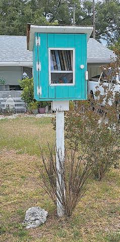 Let’s take a virtual walk through our community and get familiar with several of our own Little Free Libraries and their librarians. Lou Anne Rossdeutscher has been involved in the Little Free Library of Nottingham Villas of 70 homes from the beginning. The HOA was offered $5,000 in the form of a neighborhood improvement grant from Hillsborough County and the Master HO gave them the land. The library has a lovely pavilion that sets it apart from many other Little Libraries. There is an area for magazines and a string of lights that go on at night. Several social activities occur around the Pavilion. Lots of community love and appreciation for this Little Free Library. Lou Anne shared with me that her children often gift her books for her enjoyment and to share with others! A great family tradition.
