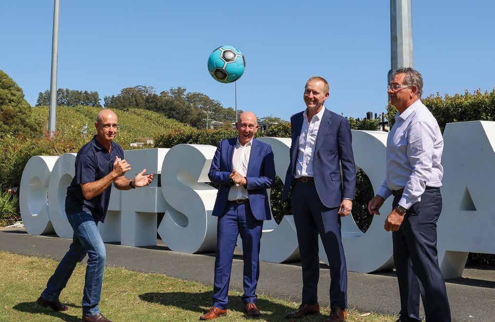 Duncan Marchant, GM at North Coast Football, Scott McCluskey, Regional Sales Manager – Greater Bank, Shane Mattiske, Newcastle Jets Executive Chairman and Paul Amos, City of Coffs Harbour Mayor.