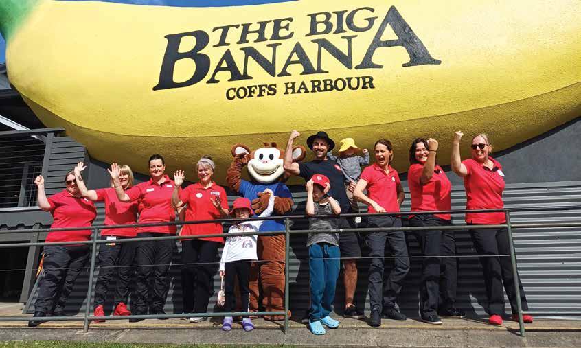 q Simmo with his kids and the Red Cross Emergency Services team at the Big Banana last year.