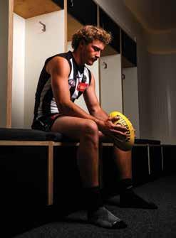 q Angus Anderson gets his first feel for wearing Collingwood’s black and white stripes after being drafted by the Magpies last week. Photo: Collingwood FC.
