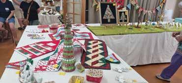 Christmas patchworks, alongside Marilyn Mercer’s floor rugs made from recycled materials.