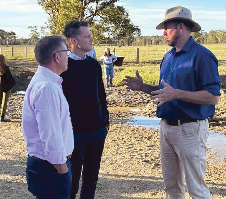 q Member for Oxley Michael Kemp discusses flood recovery with Premier Chris Minns and NSW Nationals leader Dugald Saunders in May. Photo: Michael Kemp FB.