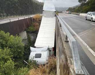 q The truck took a dive between the bridges on the Karuah Bypass. Photo: LiveTraffic.