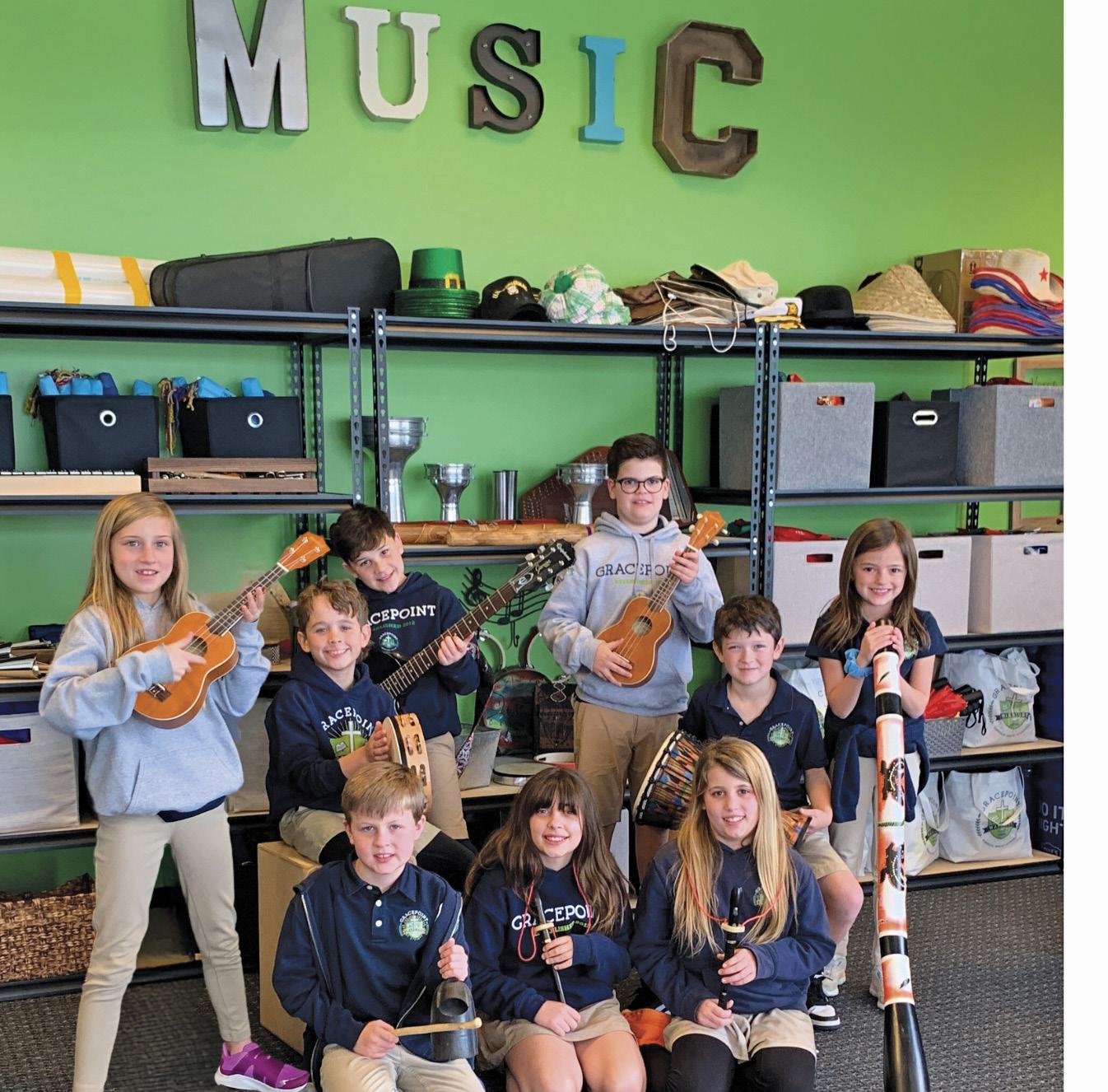 The multi-sensory music program at GRACEPOINT has about 100 students in first through fifth grades. Students learn how to play ukuleles, recorders, tambourines and keyboards, among other instruments. Singing and dancing is incorporated to give students a feel for musical theater.