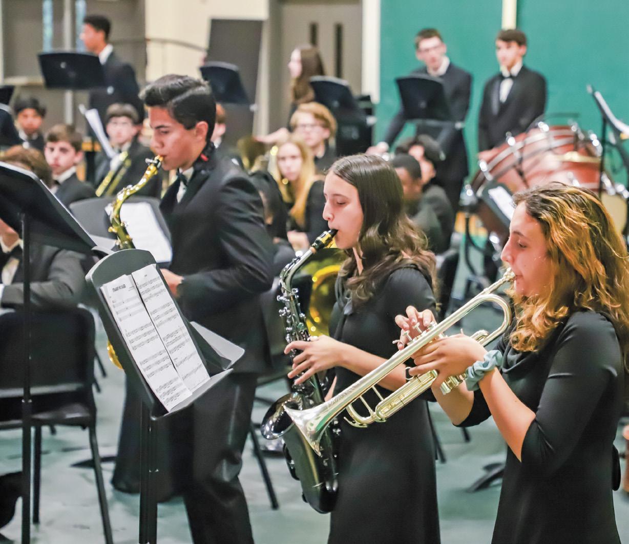 Our band program has 143 students in fourth through 12th grades. The instrumental ensembles include fourth grade beginning band, fifth grade concert band, symphonic band with sixth and seventh graders, symphonic winds with seventh and eighth graders, middle school jazz band, wind symphony with ninth through 12th grades, high school jazz ensemble and various chamber groups.