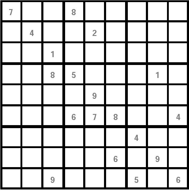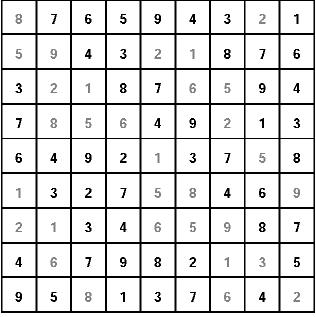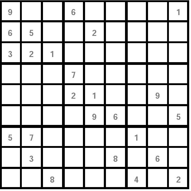 «Ñóäîêó» ïðåäñòàâëÿåò ñîáîé ìàòðèöó ñ ÿ÷åéêàìè 9õ9, êîòîðàÿ ðàçäåëåíà íà áîëåå ìåëêèå ñåêòîðû ðàçìåðîì 3õ3. Äëÿ ðåøåíèÿ ãîëîâîëîìêè íåîáõîäèìî, ðóêîâîäñòâóÿñü ëîãèêîé è ðàñ÷¸òîì, ïîäîáðàòü íåäîñòàþùèå öèôðû îò 1 äî 9. Ñäåëàòü ýòî íóæíî òàê, ÷òîáû êàæäàÿ öèôðà ïðèñóòñòâîâàëà, íå ïîâòîðÿÿñü, â êàæäîì ðÿäó, êàæäîé êîëîíêå è êàæäîì ñåêòîðå. Ïðàâèëüíî çàïîëíåííàÿ ìàòðèöà îçíà÷àåò: âû - ïîáåäèòåëü! Ïîìíèòå, ÷òî, ðàçãàäûâàÿ «Ñóäîêó», âû ïîëó÷àåòå âîçìîæíîñòü ñîâìåñòèòü ïðèÿòíîå ñ ïîëåçíûìíàòðåíèðîâàòü âíèìàíèå è ëîãèêó, à òàêæå äîêàçàòü, ÷òî âû âèðòóîç