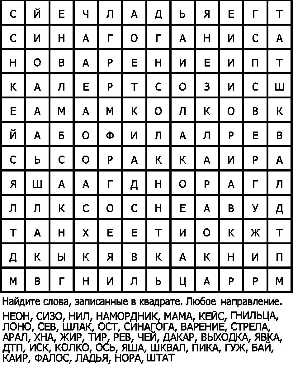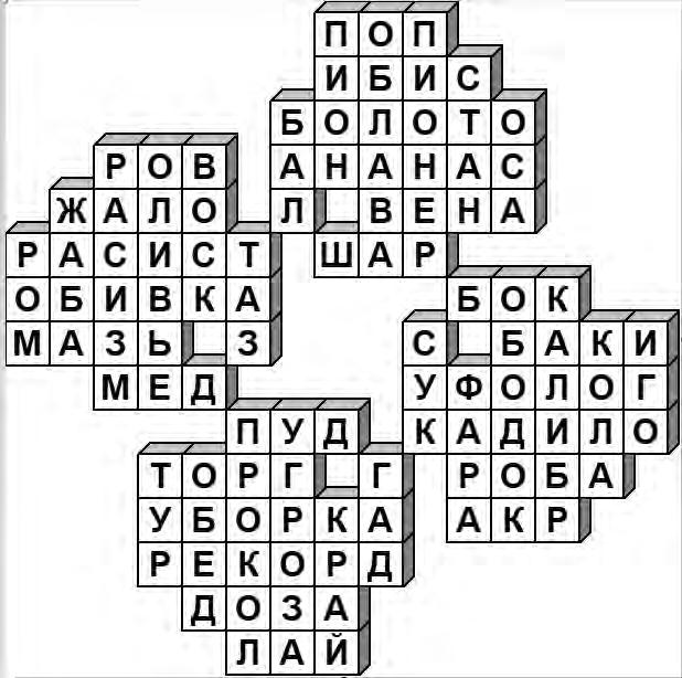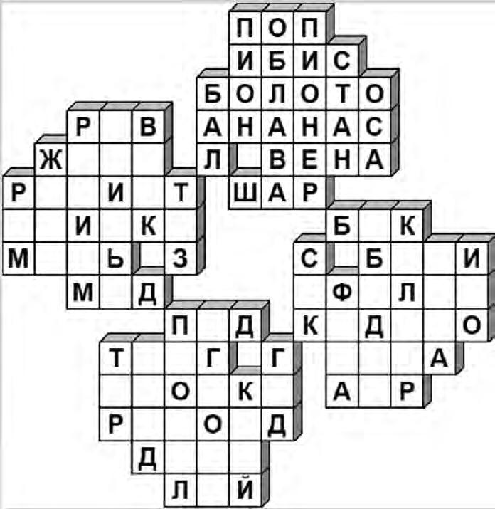 Äîïîëíèòå êâàäðàòû íåäîñòàþùèìè áóêâàìè òàêèì îáðàçîì, ÷òîáû ñëåâà-íàïðàâî è ñâåðõó âíèç ÷èòàëèñü ñëîâà. Âñå ñëîâà äîëæíû áûòü ðàçíûìè.