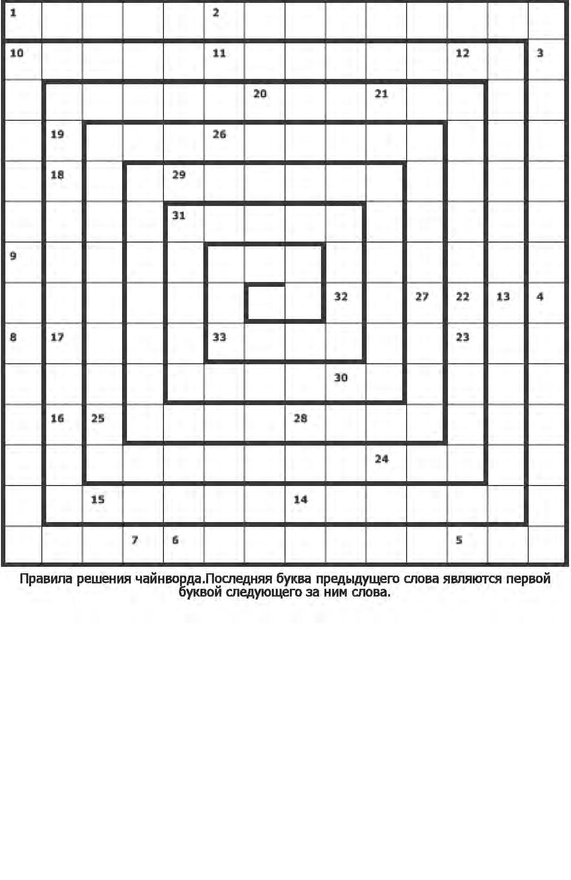 Ïðàâèëà ðåøåíèÿ êðîññâîðäà - öåïî÷êè.Êàæäîå ñëîâî èìååò 6 áóêâ â äëèíó. Êàæäîå ïîñëåäóþùåå ñëîâî íà÷èíàåòñÿ íà áóêâó, íà êîòîðóþ çàêàí÷èâàåòñÿ ïðåäûäóùåå.