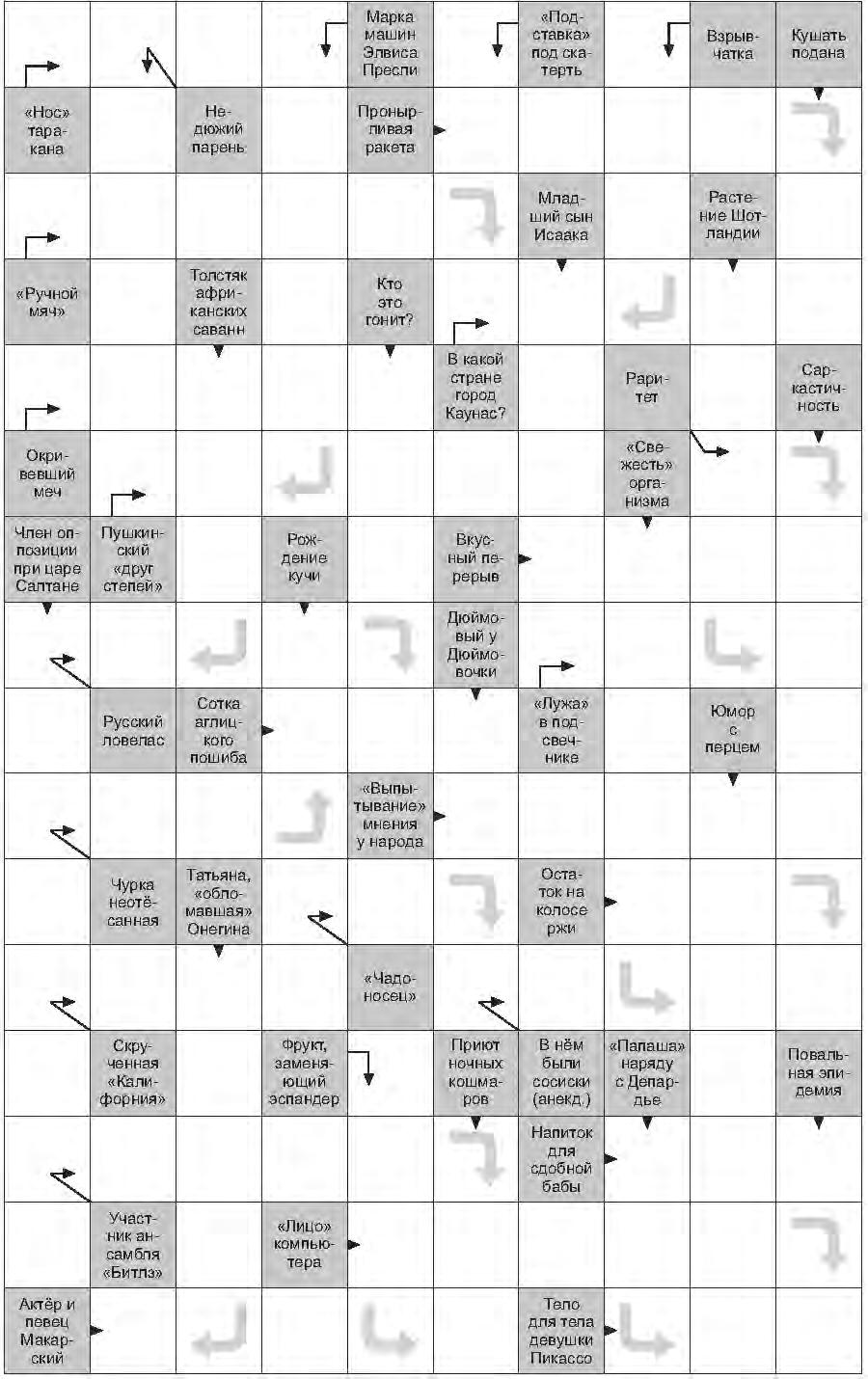 Ïî âåðòèêàëè: 1. Çëîáíàÿ ñòàðóøåíöèÿ èç ñêàçêè Ýäóàðäà Óñïåíñêîãî. 2. Ïîðîñÿ÷üè çàìàøêè. 3. Êàìåðà äëÿ ñîëüíîãî ìîòàíèÿ. 4. «Áàòóò» äëÿ âîëàí÷èêà. 5. Ñâèñíóòàÿ ïåñíÿ. 6. Ïîìîãàåò õèìè÷èòü. 7. Òîïü-ìîäåëü. 8. Ôèíàíñîâûé çàïðàâèëà. 9. Òóëîâèùå êîëóíà. 19. Ïðîôåññèîíàëüíûé ñîó÷àñòíèê. 20. «Âûïóñêíèê» çàâîäà. 21. Íåäîïîëó÷êà. 22. Êðàñíîáàé èç Ãðåöèè. 23. Âñåãäà æåëàííûé êëèåíò äëÿ ëþáîãî áàíêà. 24. Ïðîáóæäàþùàÿ êîñìåòèêà. 25. «Æó÷îê» ñðåäè ãîíî÷íûõ àâòîìîáèëåé. 26. Æåëåçíûé òðóäîãîëèê. 27. ×åëîâåê, ó êîòîðîãî âñåãäà â çàïàñå åñòü ïÿòûé òóç. 28. Ëþáèìàÿ òåìà äëÿ ðàçãîâîðà. 34. ×åðòà õàðàêòåðà, çàñòàâëÿþùàÿ áåæàòü ñ ïîëÿ áðàíè áûñòðåå ëàíè. 35. Ëèâðåÿ äëÿ ëàêåÿ. 36. «Äîðîæíûé çíàê» â äðåìó÷åì ëåñó. 38. «Áëîêïîñò» ëåñíèêà. 39. «Êàäðîâèê» íà ñú¸ìî÷íîé ïëîùàäêå. 40. Ñïåöèàëèñò ïî êîçíÿì â êîëëåêòèâå. 41. Ñóäîâîé «êàðò¸æíèê». 42. Êèíî-ñòðàøèëêà. 43. Ðåêà, «óïàâøàÿ» èç Êàíàäû â Àìåðèêó. Îòâåòû íà ñòð.42