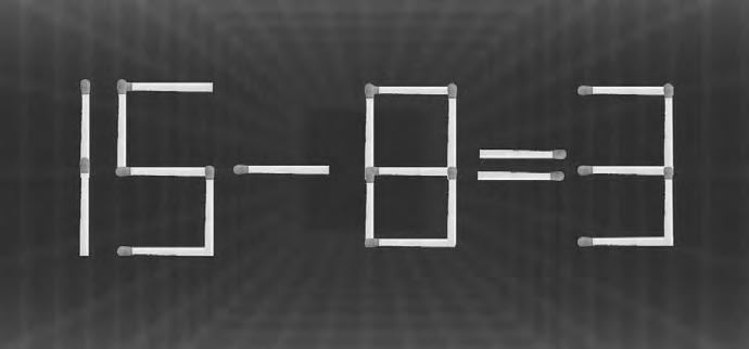 Íà èëëþñòðàöèè âû óâèäèòå íåïðàâèëüíîå ìàòåìàòè÷åñêîå ðàâåíñòâî 15 - 8 = 3, ñîñòàâëåííîå èç 22 ñïè÷åê. Åãî íóæíî èñïðàâèòü, ïåðåäâèíóâ âñåãî îäíó ñïè÷êó â äðóãîå ìåñòî.