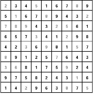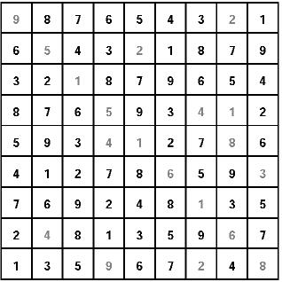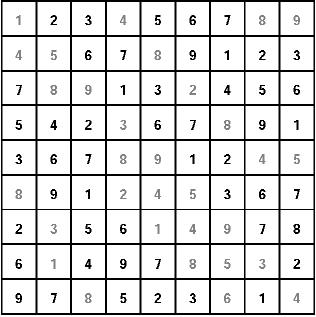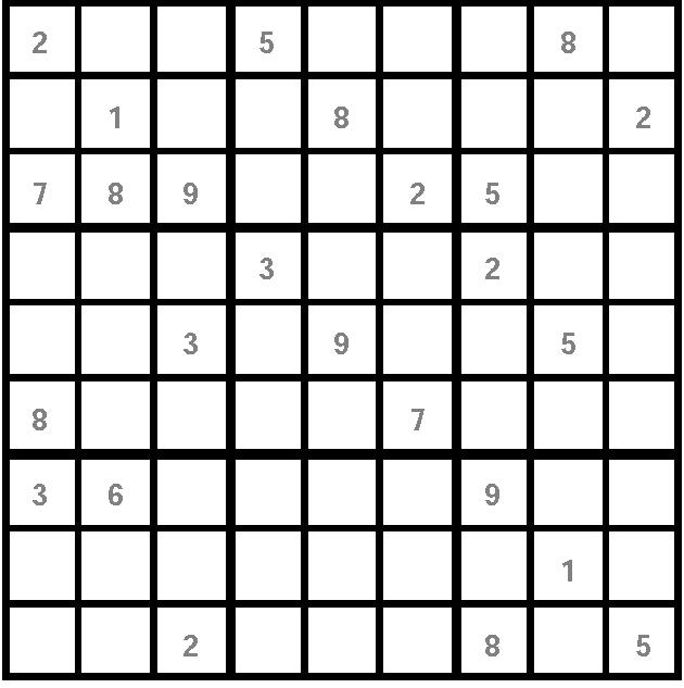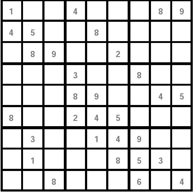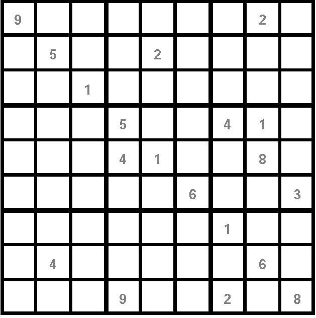 «Ñóäîêó» ïðåäñòàâëÿåò ñîáîé ìàòðèöó ñ ÿ÷åéêàìè 9õ9, êîòîðàÿ ðàçäåëåíà íà áîëåå ìåëêèå ñåêòîðû ðàçìåðîì 3õ3. Äëÿ ðåøåíèÿ ãîëîâîëîìêè íåîáõîäèìî, ðóêîâîäñòâóÿñü ëîãèêîé è ðàñ÷¸òîì, ïîäîáðàòü íåäîñòàþùèå öèôðû îò 1 äî 9. Ñäåëàòü ýòî íóæíî òàê, ÷òîáû êàæäàÿ öèôðà ïðèñóòñòâîâàëà, íå ïîâòîðÿÿñü, â êàæäîì ðÿäó, êàæäîé êîëîíêå è êàæäîì ñåêòîðå. Ïðàâèëüíî çàïîëíåííàÿ ìàòðèöà îçíà÷àåò: âû - ïîáåäèòåëü! Ïîìíèòå, ÷òî, ðàçãàäûâàÿ «Ñóäîêó», âû ïîëó÷àåòå âîçìîæíîñòü ñîâìåñòèòü ïðèÿòíîå ñ ïîëåçíûìíàòðåíèðîâàòü âíèìàíèå è ëîãèêó,
