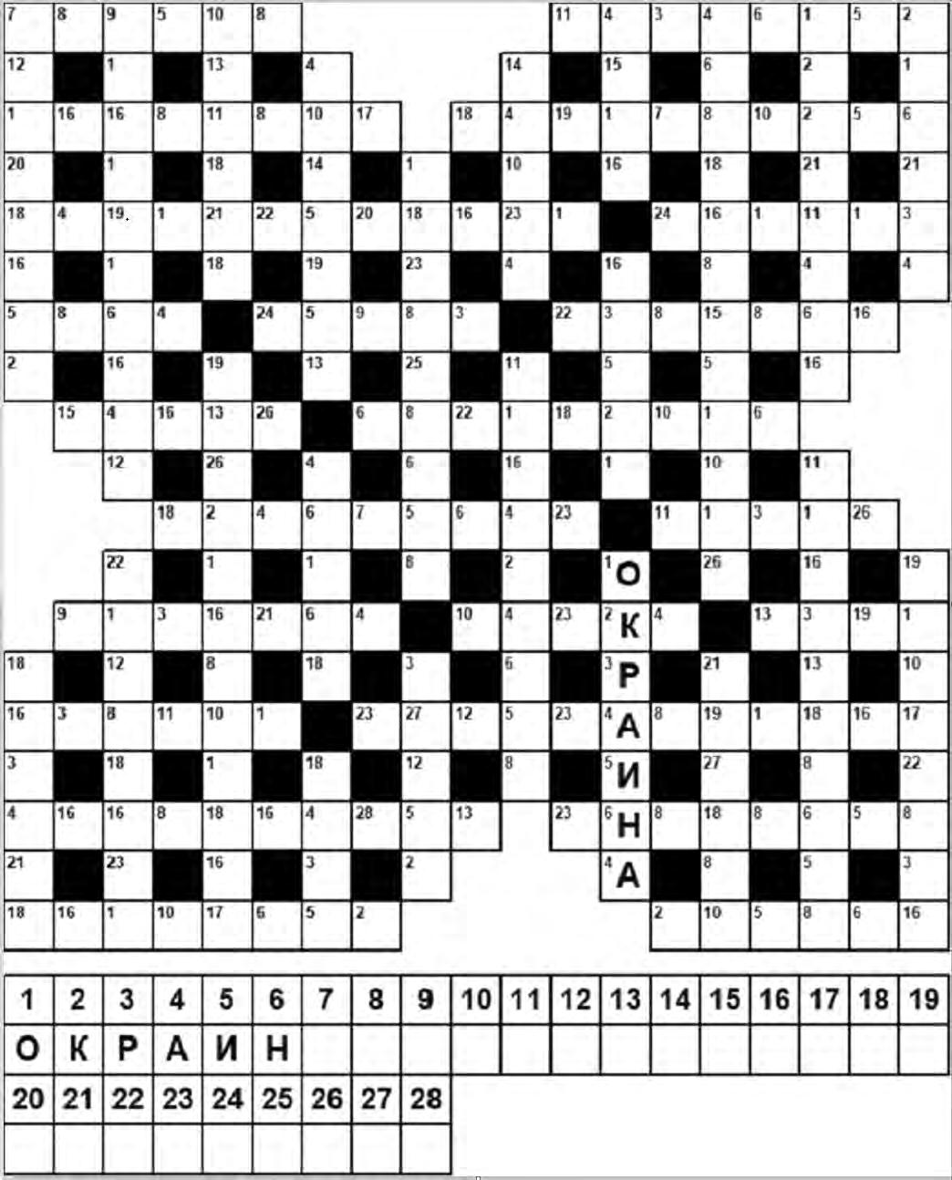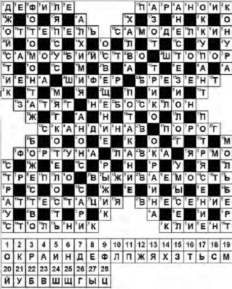 26. Êàêîå ñòèõîòâîðåíèå ñîñòîèò èç äâóõ êàòðåíîâ è ïàðû òåðöåòîâ? 28. È ñîì, è ãóñàð. 30. Ïîìðà÷åíèå ÷óâñòâ. 31. Èíäååö, êîòîðîãî áîÿëèñü Òîì Ñîéåð è Ãåêëüáåððè Ôèíí. 32. Èç ýòîé ðàñòèòåëüíîé òêàíè, îòâå÷àþùåé çà ðîñò ñòåáëÿ â òîëùèíó, áûë èçãîòîâëåí ñêàçî÷íûé äîìèê. 33. ßðêàÿ ïðåäñòàâèòåëüíèöà ïîëèöåéñêîé êðûøè. 35. Íàó÷íîå ñî÷èíåíèå. 37. Òþðêñêàÿ «ãîëîâà», ñòàâøàÿ ñèìâîëîì áàðòåðà â ðóññêîé ïîãîâîðêå. 38.  êàêîé ãåîëîãè÷åñêèé ïåðèîä ïîÿâèëèñü ïòèöû? 39. Ïîñëåäíèé èç ýòèõ áûêîâ áûë óáèò îõîòíèêàìè â Ïîëüøå â 1627 ãîäó. 42. Ñòîëèöà Áàõðåéíà. 43. ×àñòü ñáðóè, ñòÿãèâàþùàÿ êëåùè õîìóòà. 45. Ñôåðà êîíòðîëÿ õóëèãàíîâ. 46. Ïðåçèäåíò Âåíåñóýëû, ýòíè÷åñêèé èíäååö. 47. «Òåìíèöà» äëÿ îçîðíèêîâ. 50. Ïëàíåòà, ÷üè õðîíèêè ñî÷èíèë àìåðèêàíåö Ðýé Áðýäáåðè. 52. «Âàõò¸ð» â ýëåêòðîöåïè. 53. Îäèí èç ãëàâíûõ èñïîëíèòåëåé ìàññîâûõ ðåïðåññèé â 30-õ ãîäàõ XX âåêà. 54.  êàêîì øòàòå ÑØÀ íàõîäèòñÿ Áîëüøîå Ñîë¸íîå îçåðî? 55. Îâðàã ñ íåâûñîêèìè ñêëîíàìè è ïëîñêèì äíîì. 56. Ìîíãîëî-òàòàðñêèé ãí¸ò. 60. «È âîñüìåðè÷íîå» íà Ðóñè. 61. Æåðòâà êèäàë. 62. Îôèöåðñêèé òèòóë â Îñìàíñêîé èìïåðèè. Îòâåò íà ñòð.42