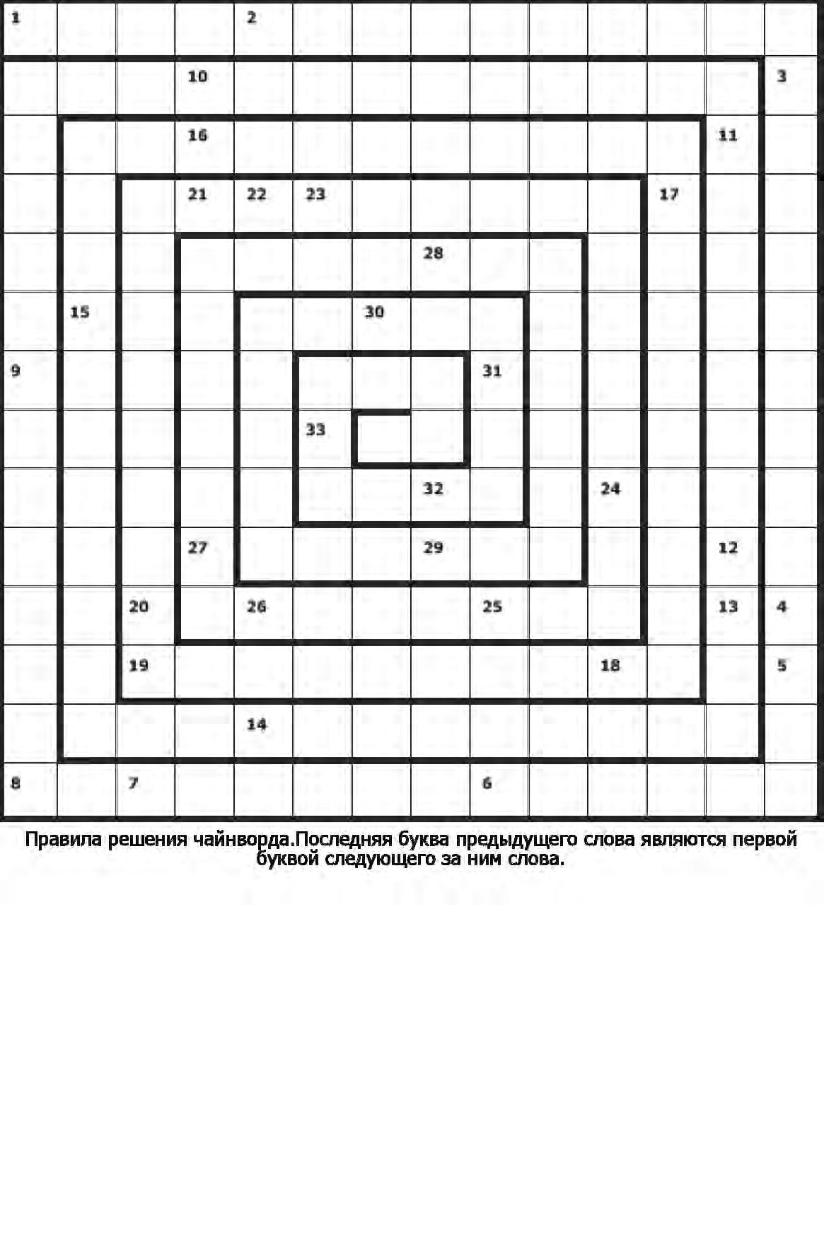 Ïðàâèëà ðåøåíèÿ êðîññâîðäà - öåïî÷êè.Êàæäîå ñëîâî èìååò 6 áóêâ â äëèíó. Êàæäîå ïîñëåäóþùåå ñëîâî íà÷èíàåòñÿ íà áóêâó, íà êîòîðóþ çàêàí÷èâàåòñÿ ïðåäûäóùåå. 1.Ôðàíöóçñêèé èçîáðåòàòåëü òêàöêîé ìàøèíû. 2.Ðàñòîðæåíèå áðàêà. 3.Èçìåðèòåëüíîå óñòðîéñòâî. 4.Õîõëàòûé ïîïóãàé. 5.àìåðèêàíñêèé ïèñàòåëü. XIX âåê. 6.Çàæèãàòåëüíàÿ ñìåñü. 7.Àìåðèêàíñêàÿ ñèñòåìà ðåâîëüâåðà. 8.Êîìåäèéíîå ìóçûêàëüíî-ñöåíè÷åñêîå ïðîèçâåäåíèå. 9.Èñêóññòâåííîå âîëîêíî. 10.Ãðûçóí. 11.Áîëüøîé êðèâîé òóðåöêèé êèíæàë. Îòâåò íà ñòð. 42.