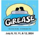 Session II / Grease, School Version / Rising Grades 8 to 12 / Three weeks (June 24 – July 12) / Show Dates: July 9, 10, 11, 12