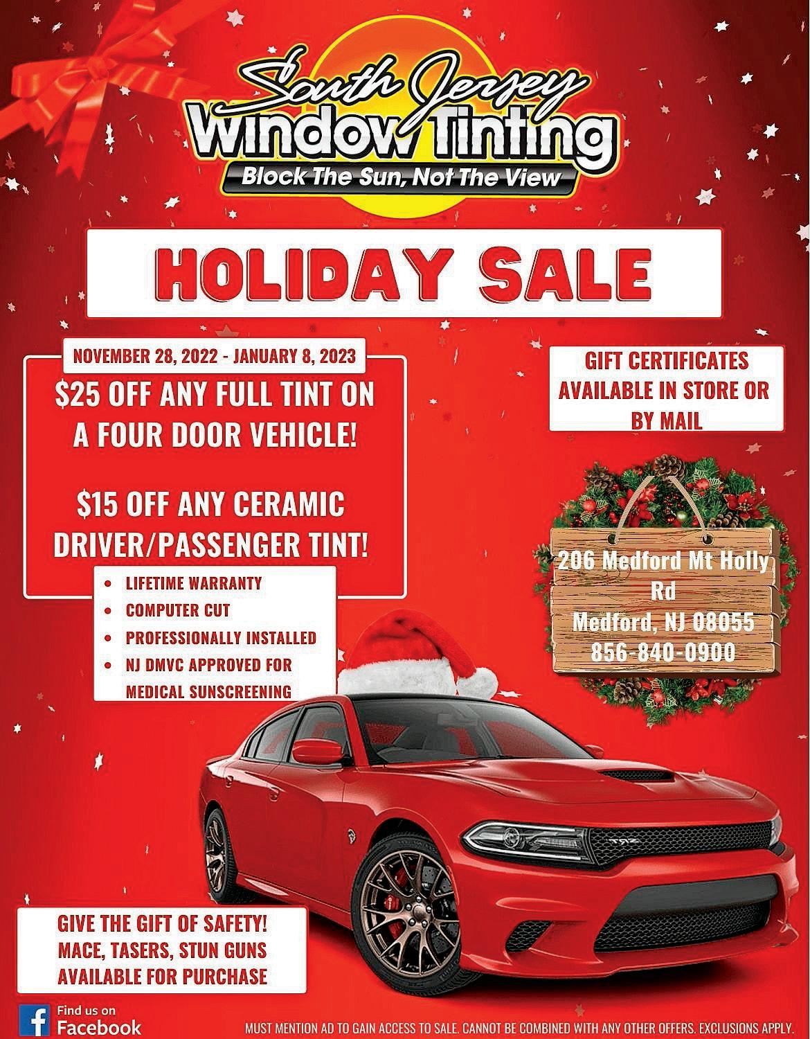 For more information, call toll free 1-800-985-8468 or email southjerseywindowtinting@ gmail.com or visit our website at southjerseywindowtinting.com. South Jersey Window Tinting is located at 206 Medford-Mt. Holly Rd., Medford NJ 08055.