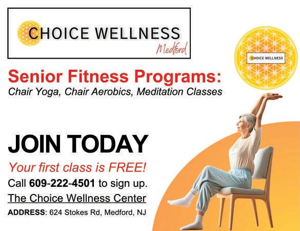 calling us at 609-222-4501 today. Our classes are led by a Certified Senior Fitness Instructor who has been with The Choice Wellness Center for over two years, ensuring expert guidance tailored to your needs. Your first class is complimentary, and we’re eager to welcome you to our community!