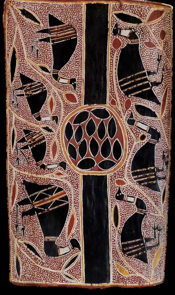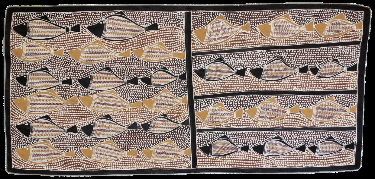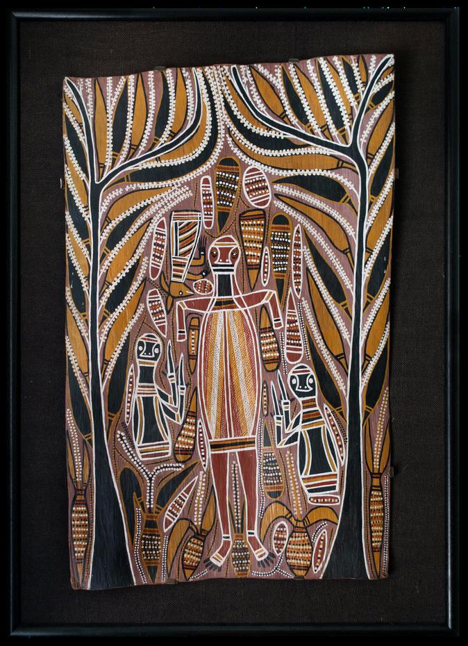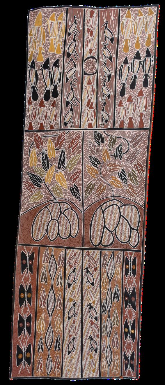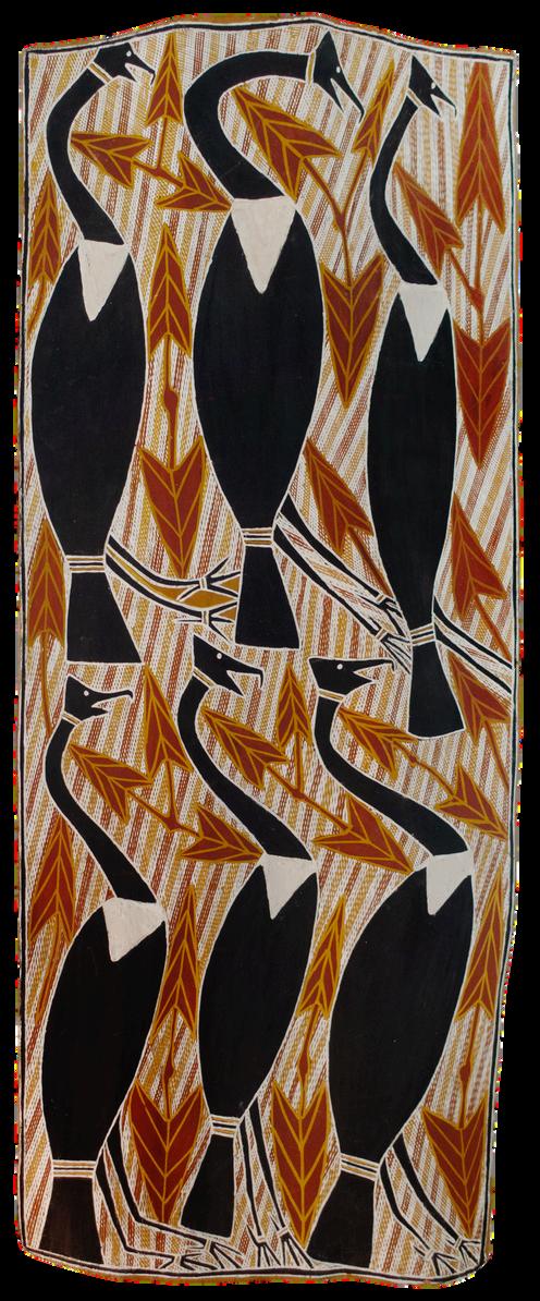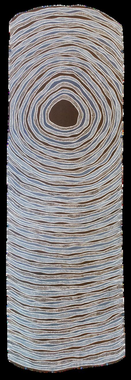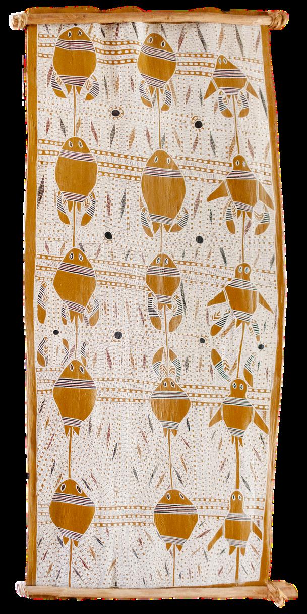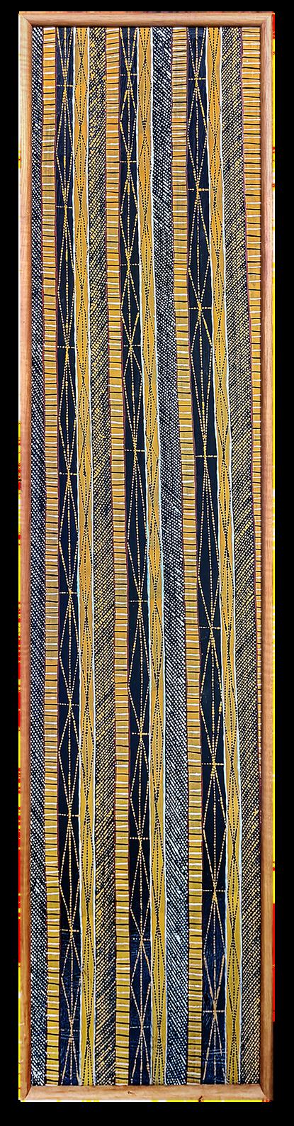Alongside Warangkula’s masterpiece, Dr. Gilbert assembled a distinguished group of early Papunya boards and Eastern Desert canvases, as well as a suite of monumental 1990s barks. Some works he shared more widely, through select donations and loans, extending their reach beyond his home and into the public sphere.