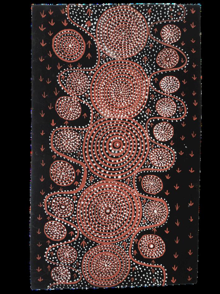 Comparable works reside in the National Gallery of Victoria, the National Gallery of Australia, and the Art Gallery of Western Australia Ambitious late-career canvases of this kind seldom reach the market, most remaining in institutional or private hands The market has consistently valued two bodies of Warangkula’s work most highly: the seminal Papunya boards of the early 1970s and the monumental canvases of his late career This painting belongs firmly in the latter category.