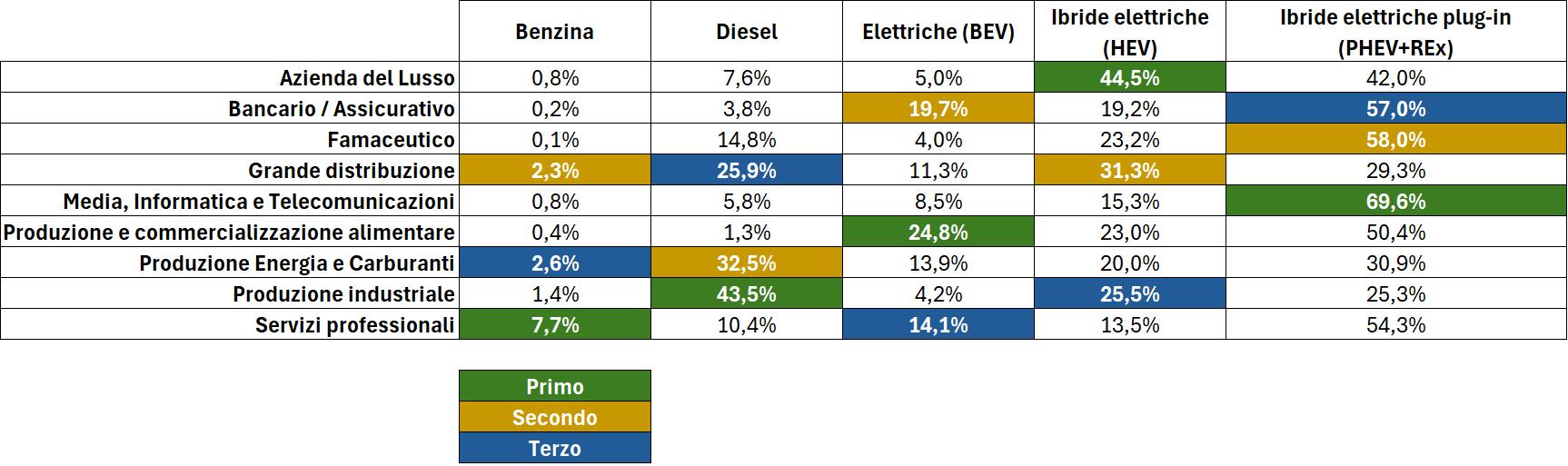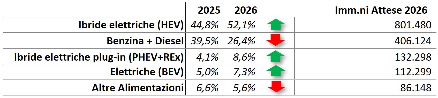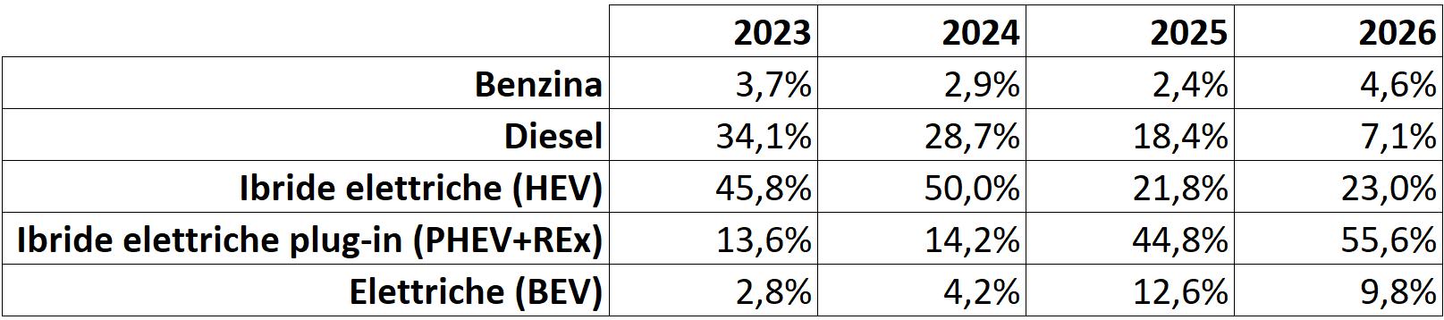 Quota Mercato per tipologia alimentazione