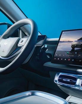 riscaldamento e ventilazione. Il sistema ENC riduce il rumore fino a 4 dB, mentre il tetto panoramico Infinity porta luce e ariosità. La plancia è dominata dal display scorrevole da 15,6” (esclusivo della Premium), elemento distintivo che può avvicinarsi al guidatore o al passeggero tramite comandi vocali, touch o un gesto della