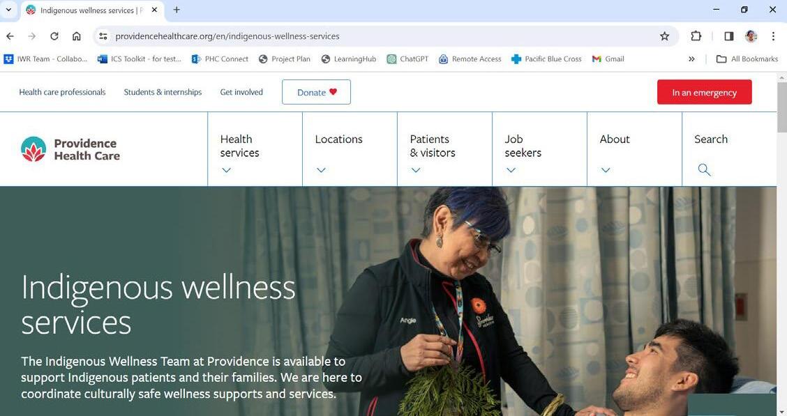 Additionally, we have engaged Indigenous patients and family members to provide feedback for the creation of the Indigenous Wellness Section on the Providence Health Care website.