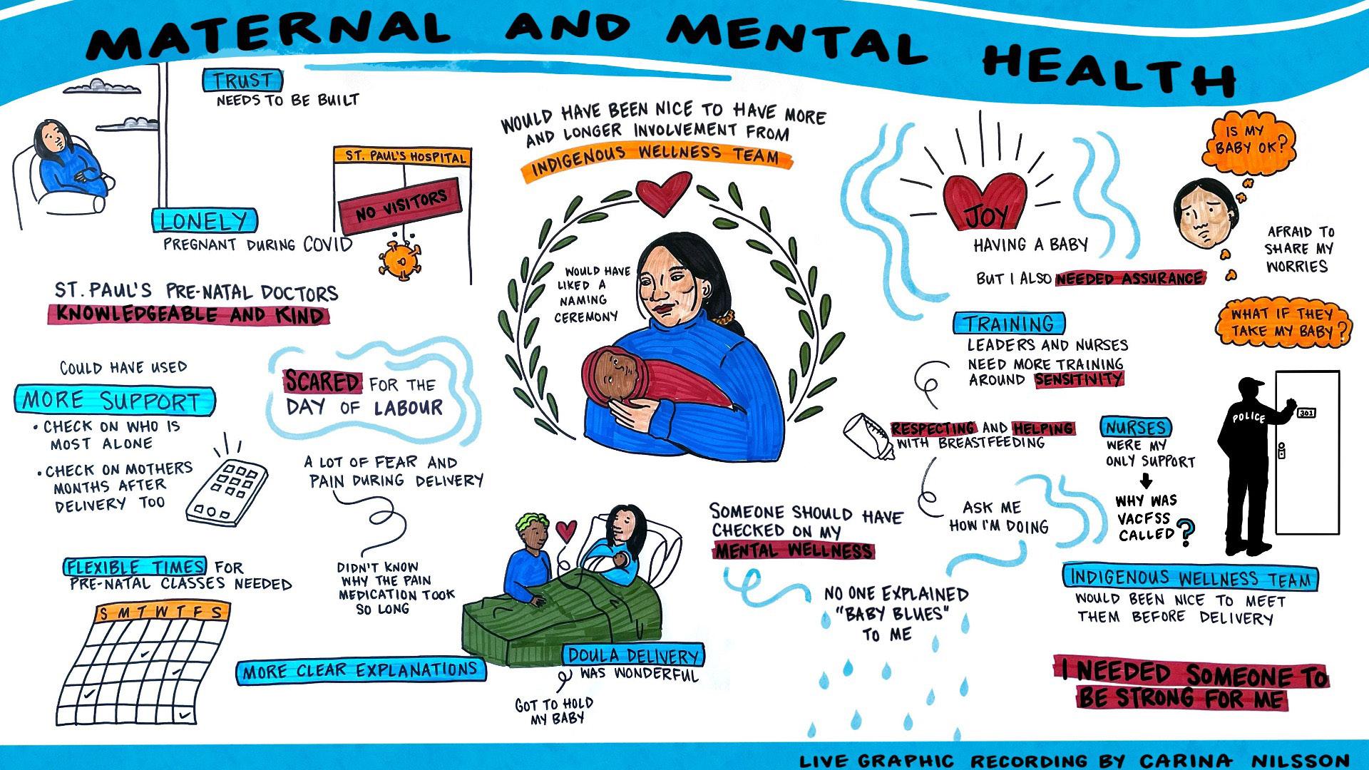 • For the ICS improvement project with the St. Paul’s Hospital (SPH) perinatal team, we initiated the collaboration by running a series of patient journey map presentations with perinatal providers. With over 500 attendees, these sessions focused on sharing the stories and experiences of Indigenous people who gave birth to their babies at SPH in an effort to foster more culturally safe care.