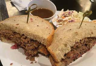 as their heads definitely should try one of the “skyscraper” options, like the Empire State Stacker shown on the previous page, which is a nearly 9-inch-tall combo of corned beef, pastrami, turkey and roast beef with Swiss and provolone cheeses on marble rye. Lucky Dill even offers “old school” NY Deli Delights like tongue, silky smoked whitefish salad and “Nib bles & Noshes” like Gabila’s Coney Island knishes, Lower East latkes (potato pancakes) with sour cream and chunky applesauce and Hebrew National hot dogs.