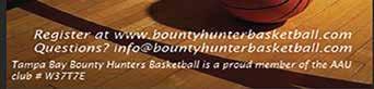 The Bounty Hunters, a local AAU (Am ateur Athletic Union) competitive basketball program, is hosting tryouts for its girls travel teams on Sunday, October 23, and invites girls in grades 5-11 in New Tampa and Wes ley Chapel to try out for the squad.