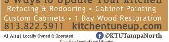 Kitchen Tune-Up will come to you for a free inhome consultation. For more information, (813) 8225911, visit KitchenTuneUp. com/tampa-north-fl or see the ad on page 43.