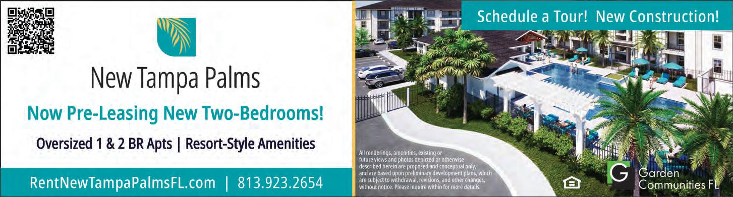 For more information about The Palms, go get your car washed, see the ad on pg. 16 of this issue or visit ThePalmsCarWash.com. Until the Wesley Chapel location opens later this month, visit the Steak ‘n Shake at 17509 N. Palms Village Pl. in New Tampa or SteaknShake.com.