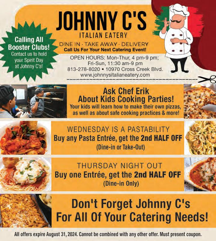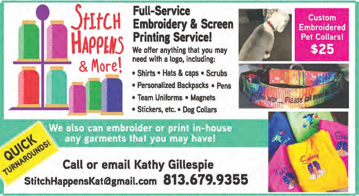 “Ice cream brings out the kid in all of us!” The New Tampa location of Cold Stone Creamery (17519 Preserve Walk Ln.) is open every day at 11 a.m. and stays open until 10 p.m. Mon.-Thur. until 11 p.m. on Sun. and until midnight on Fri. & Sat. For more info, call (813) 977-0024, visit ColdStoneCreamery.com or see the ad on pg. 50, where you’ll find this month’s Daily Store Specials. For special orders, call Sunny directly at (813) 469-7954.