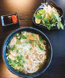 The new Ha Long Bay features a variety of Vietnamese and Asian fusion favorites, includ ing pho soup (top left photo), banh mi sand wiches (left), Chinesestyle stir-fry dishes (bot tom right) and fried rice (bottom left), Japanesestyle gyoza dumplings (bottom left), poké bowls, rice combination plates, sushi and a large variety of boba teas. Beer, wine and saké should be available soon, too.