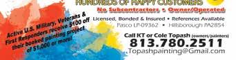 TRANQUILITY POOL SERVICE. New Tampa owned & operated. Great Pricing w/outstand ing customer service! LICENSED, BONDED & INSURED. See why we are New Tampa and Wesley Chapel’s #1 Choice!! Call or Text Chris today @ 813-857-5400 or visit Tran quilityPoolService.com. New customers get ONE MONTH FREE!