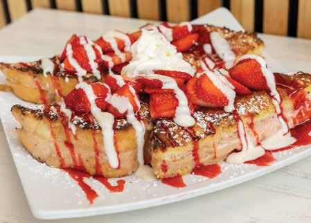 Need something sweet? There are four varieties of French toast, in cluding plain, orange pecan, loaded (with strawberries, blueberries and bananas) and the awesome stuffed strawberry French toast shown on this page.