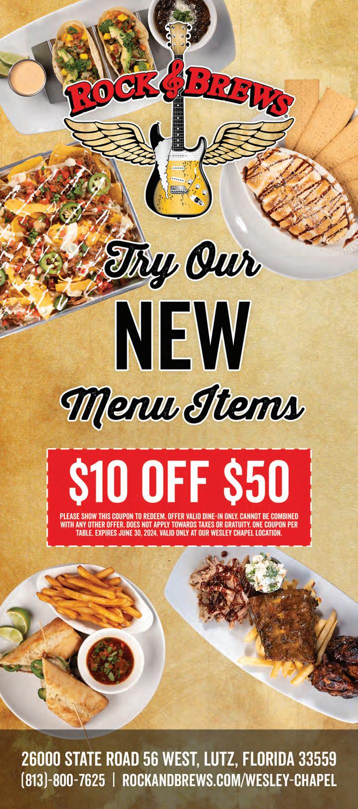 Congratulations go out to the man agement of the Hyatt Place Tampa Wes ley Chapel (26000 Sierra Center Blvd.), which rolled out the new menu at the hotel’s revamped “The Placery” restaurant and bar on May 1.
