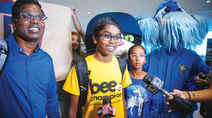 Scripps Spelling Bee champ Bruhat Soma is greeted by a hero’s welcome upon his return.