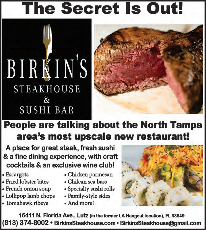 Even though his new place isn’t located in Wesley Chapel or New Tampa, a heartfelt con gratulations goes out to Mark Birkin, the owner of the new Birkin’s Steakhouse & Sushi Bar on N. Florida Ave./U.S. Hwy. 41 in Lutz, in the former location of the once-popular L.A. Hangout (and a couple of other restaurants since then).