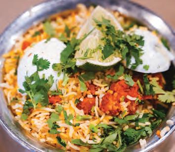 Other Chinese-style entrées include Manchurian, Szechwan, hot garlic, chili, extra-spicy Szechwan pep percorn and AK 47 (with ghost pepper sauce, described on the menu as “dan gerously spicy”) dishes. I’ve also been told I need to try Inchin’s version of Chinese “Hot Pot,” which is described on the menu as “numbing.” Many of these entrées are available with vegeta ble “coins,” cauliflower, tofu, paneer, chicken, lamb, beef or shrimp.