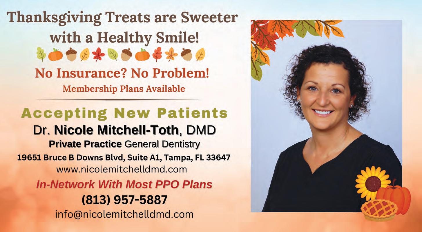 Weeks before Christina passed, the Rotary Club planned a Casino Night Fund Raiser to help the family with the expenses related to Troy and Christina’s treatments. And, even though Christina lost her battle, that event is still happening. It is being held on Saturday, November 23, 7 p.m. (at the Hilton Garden Inn off S.R, 56). which is a few days before the date this issue is guaranteed to hit mailboxes throughout Wesley Chapel. However, since many of our issues have reached mailboxes as early as the Friday or Saturday before our Tuesday “guaranteed by” cover dates, I hope if you’re reading this, even on Saturday, you’ll want to be part of it. For details, see the Events Calendar on pg. 20.
