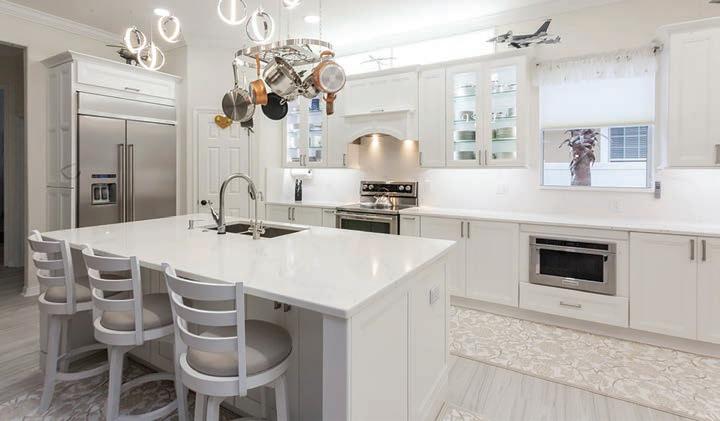 Using advanced technology, CMK designers will visit your home to scan the space with specialized cameras, producing detailed layouts. The scan is then brought back to the CMK showroom on W.Hillsborough Ave., where the designer begins developing ideas based on the space. At the heart of CMK’s customer experience is its showroom on W.Hillsborough Ave. in Tampa, a 4,000-squarefoot space where you will meet with the professional designer who visited your home and who will work with you on your dream project. The scans are transformed into 3D renderings that you can explore at the showroom, offering a lifelike preview of the final result.