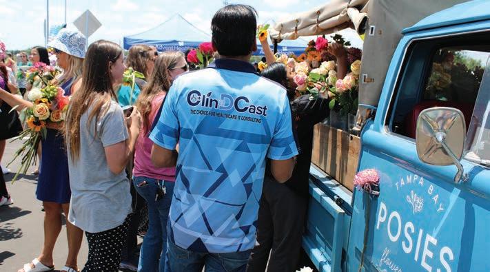 Despite temperatures that soared well above 90º, an estimated crowd of more than 1,000 people came to enjoy free food and beverages, provided by four hard-working food trucks, free pickyour-own bouquets of absolutely gorgeous flowers from Tampa Bay Posies (top right), free fresh fruits and veggies from the AdventHealth “Farm-acy” (which Murrill himself helped give out), face painting, music provided by Miles DJ Productions, and of course, tours of the new AHMP ER.