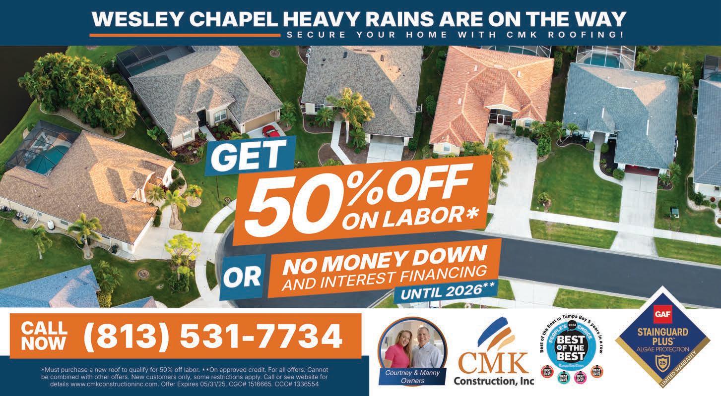 Nothing that appears in Wesley Chapel Neighborhood News may be reproduced, whether wholly or in part, without permission. Opinions expressed by Wesley Chapel Neighborhood News writers are their own and do not necessarily reflect the publisher’s opinion. The deadline for outside editorial submissions & advertisement reservations for Volume 33, Issue 12, of Wesley Chapel Neighborhood News is Thursday, May 29, 2025.