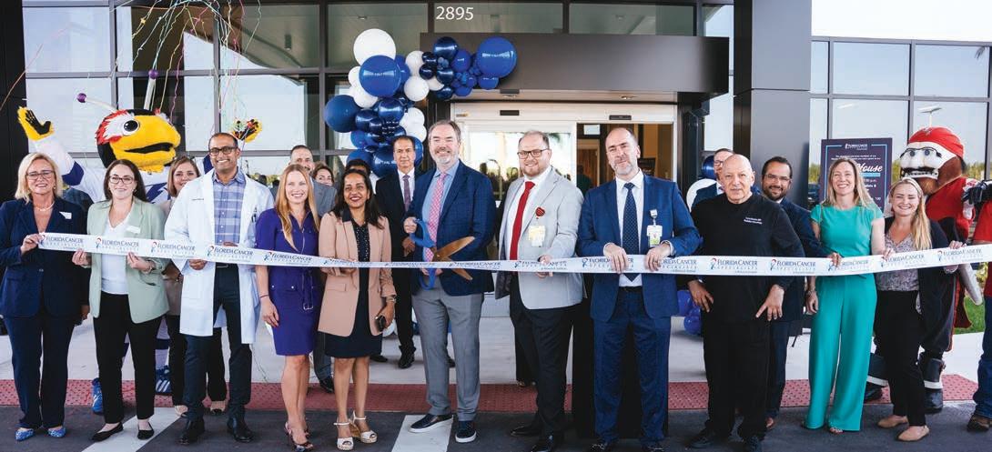 FCS cut the ribbon (in conjunction with the North Tampa Bay Chamber, or NTBC) to officially open the new state-of-the-art treatment center on May 15, as the location’s VP of operations Samantha (Sam) Watkins introduced direc tor of patient advocacy (and Board-certified oncologist and hematologist) Richard McDonough, M.D. (hold ing scissors in the photo on this page), who introduced several of his colleagues, including medical oncologist Dr. Ayman Barakat, radiation oncologist Dr. Bradford Perez and GYN (gynecologic) oncologist Dr. Jessica Stine to the crowd of more than 100 people, many of whom were FCS doctors, staff members and administrators.