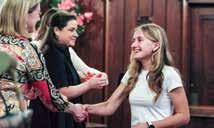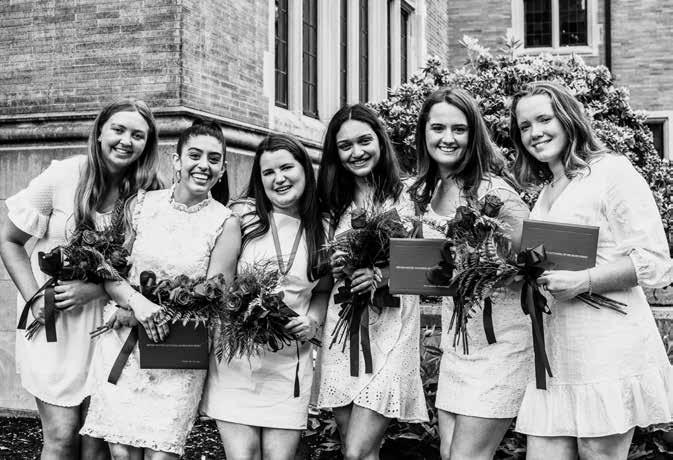 This year’s graduating class helped launch new traditions that celebrate Sacred Heart spirit, deepen alumnae connections, and leave a lasting impression on campus. It all started in February with the 100 Days Luncheon, a joyful kickoff to the countdown to graduation. Hosted by Class of 2025 families, the room buzzed with laughter, memories, and heartfelt advice from Head of School Jessica Hooper P ’28 and alumna Beth Gallagher ’99. They shared reflections on sisterhood—what it means to be a Newton Country Day alumna and the lifelong importance of connection. Later in the spring, the school introduced another new tradition: the Sacred Heart Alumnae Induction. Seniors gathered in the chapel to be welcomed as members of the global Sacred Heart alumni network. Reflections from Board Chair Maura Murphy ’99 and Cleo Greenwood ’14 captured the power of staying rooted in the Sacred Heart mission, no matter where life leads. Each senior received a symbolic Sacred Heart passport and a pin recognizing their accomplishments; they also made history as the first class to sign a new alumnae book, which now resides in the newly renovated front lobby, a transformation made possible by the Class of 2025 families with a creative boost from the Senior Project of Neasa Kearney ’25.