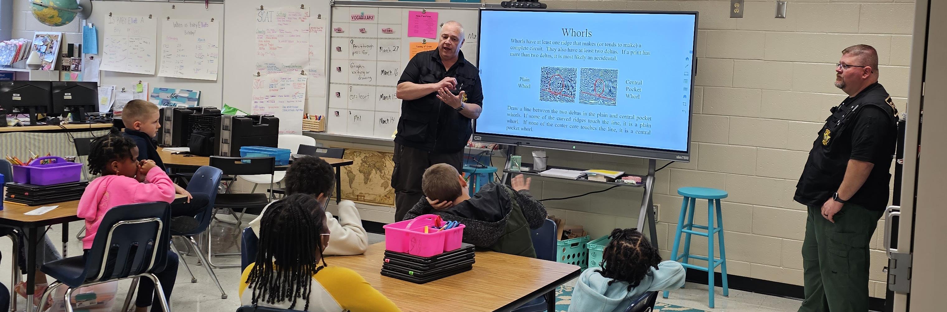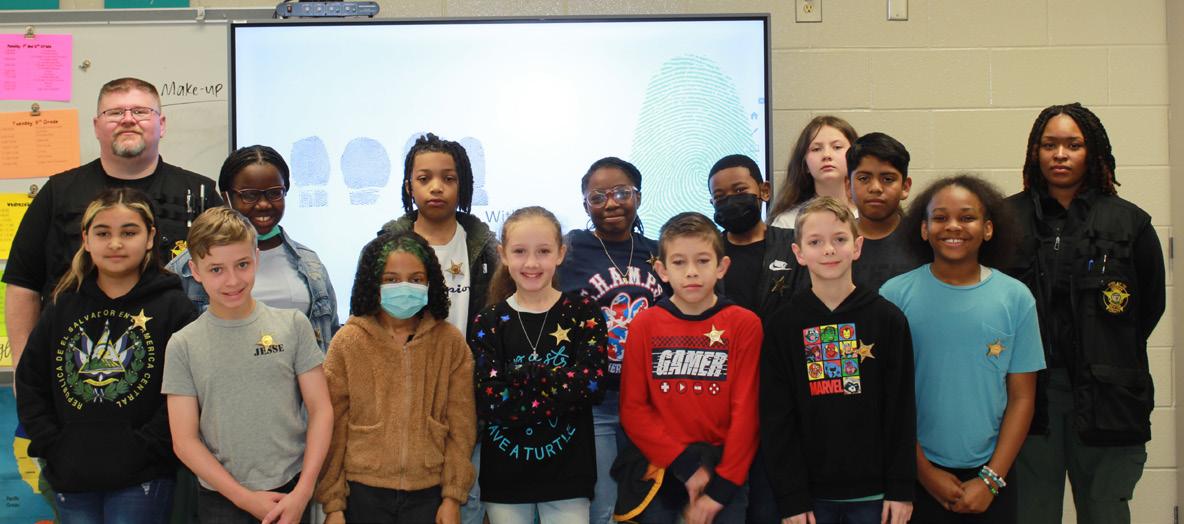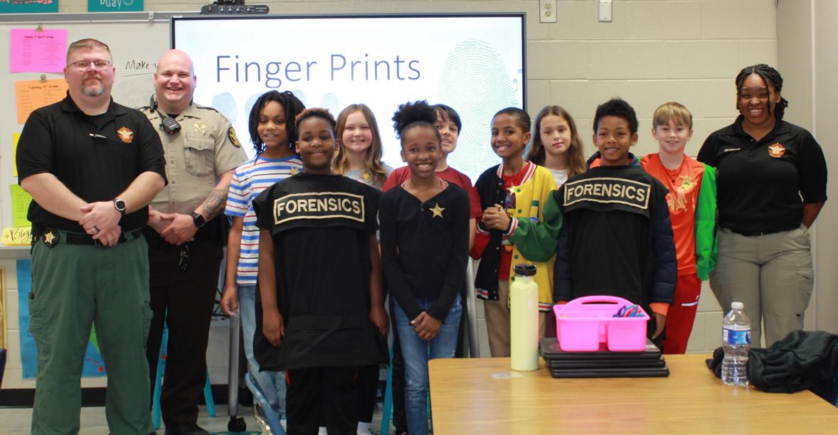 From March 6th through March 9th, the Newton County Sheriff’s Office Crime Scene Investigations hosted fingerprint classes at Oak Hill Elementary School for students in grades first through fifth. The NCSO Traffic Unit Deputy John Restivo also attended one of the fingerprint classes to assist Investigators Mickey Kitchens, Jaime Broce, Christopher Bowles, and Evidence Technician Macharia Belgrave.