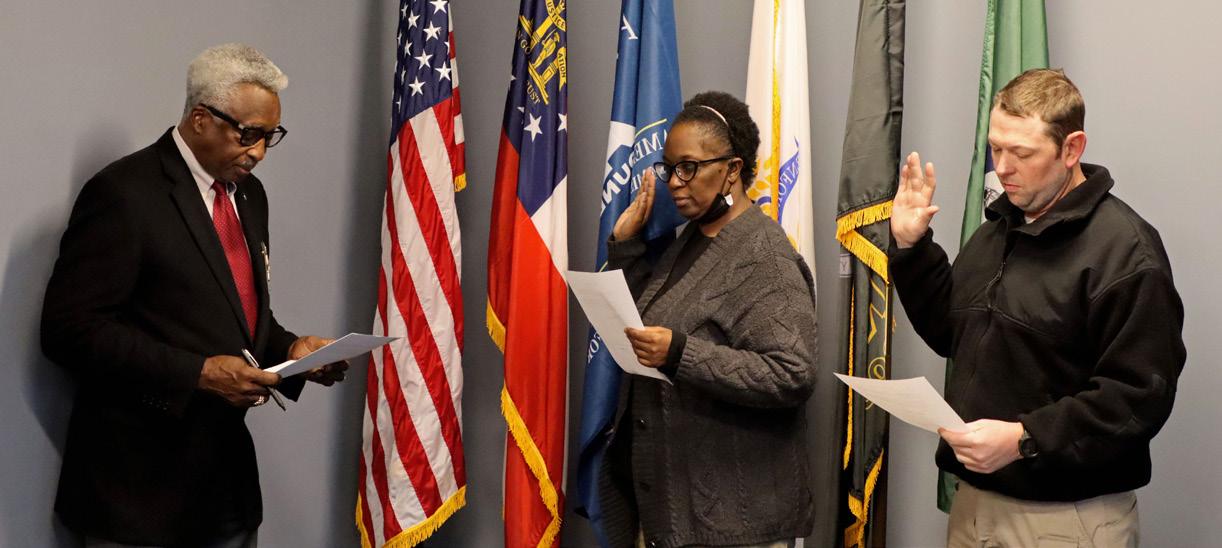 In January, Sheriff Ezell Brown administered the oath of office to six newly hired Newton County Sheriff’s Office personnel. Those sworn in were Sylvia Graham, Detention Officer; Wendy Craigwell, Administrative Technician; Luke Gilreath, Maintenance Technician; Antonio Lee Jr., Deputy Sheriff, Recruit; LaShawn Williams, Deputy Sheriff, Recruit; and Willie Clarke, Deputy Sheriff, Bailiff.